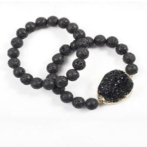 Gemstone: Lava Beads and Brack Druzy Quartz